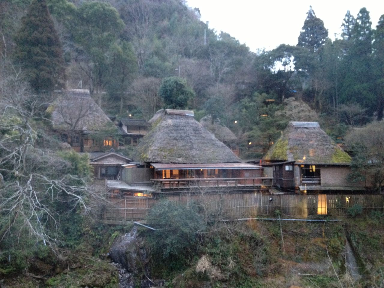かやぶき屋根のある景色に見とれながら