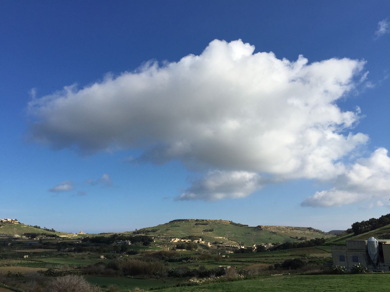 丘の上にちょこんと乗ったかのような雲