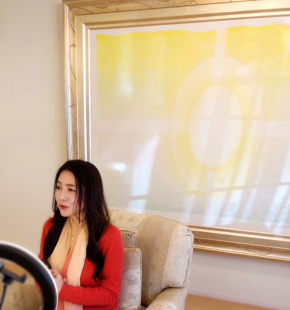 私はカメラレンズに向かって話しているので